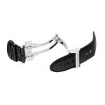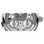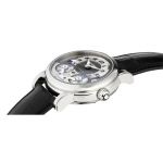 42 mm stainless steel watch with black dial, red-gold plated hands and numerals, automatic movement, date display, black alligator-skin strap